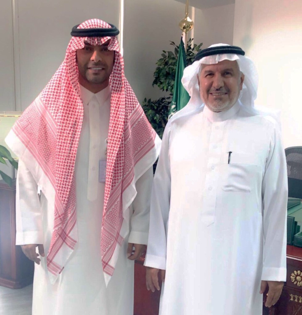 With His Excellency the Adviser in the Royal Court and the General Supervisor of the King Salman Humanitarian Aid and Relief Center, Dr. Abdullah Al Rabiah, when I was working as a Senior Digital Media Specialist in the Department of Media and PR at 2019