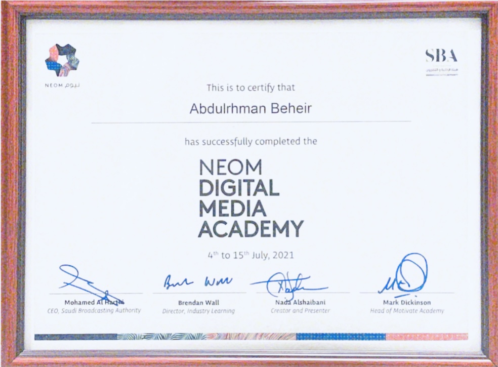 After my graduation ceremony from NEOM Academy for Digital Media at 2021, and winning the award for the best creative idea from the Graduation Projects Evaluation Committee