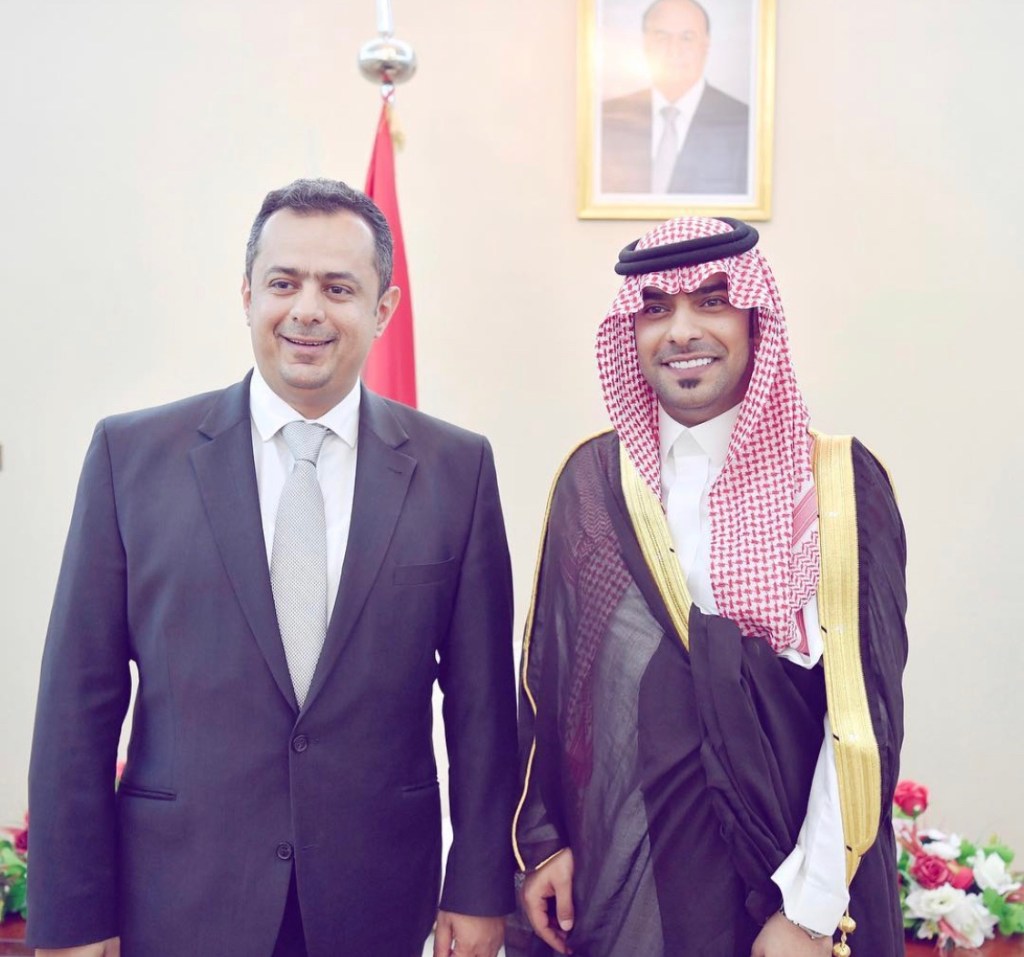 With Yemeni Prime Minister Dr. Moeen Saeed, during my visit with an official Saudi delegation to the city of Aden at 2018, to attend the ceremony of delivering development aid that helps expedite the transportation of humanitarian and commercial materials to Yemeni ports
